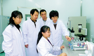 康为民教授(左二)与科研团队在一起。 冯健摄