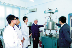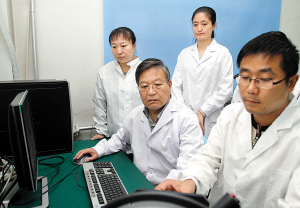 李金宗教授(左)和他的科研团队。 兰锐摄