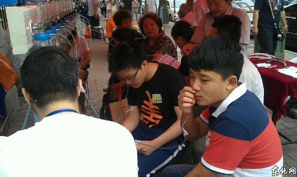 考生在考场外吸氧。东北网记者 王蕊 摄