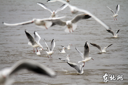 兴凯湖中成群的燕鸥。东北网记者 李博 摄