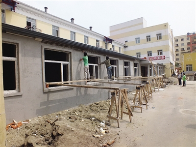 记者在哈尔滨电机厂医院的院内看到,居民投诉的“私建”平房依附于临街的三层老楼,占地面积为200余平方米,主体工程已基本完工。采访中,哈尔滨电机厂医院一姓王的院长介绍说,该医院正在进行晋级二甲医院的审核工作,由于条件有限,门诊大厅面积不达标,于是在此建了这片平房,用做急诊使用。“我们确实没有拿到审批手续,但手续都在办理中。”
