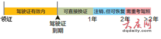 车管所的工作人员告诉记者,驾驶证超期之后,根据超期时间的不同,会有三种状态。