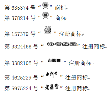 据了解,上海鼎丰酿造食品有限公司创建于1864年,于1993年在冰淇淋等商品上核准注册了第635374号商标,1996年在饺子、馒头、花卷等商品上核准注册了第878214号商标。哈尔滨老鼎丰食品有限公司创建于1911年,于1982在糕点上核准注册了第157379号注册商标;2004年在冰淇淋等商品上核准注册第3324466号注册商标;2004年在进出口代理等服务上核准注册第3382102号注册商标;2008年在蛋糕、甜食等商品上核准注册第4625229号注册商标;2010年在蛋糕、甜食等商品上核准注册了第5975224号注册商标。