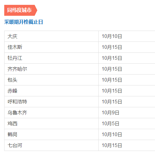 与此同时,记者从哈市气象部门搜集到了近10年哈市10月20日的天气情况,其中达到零下的年份有5年,在0℃左右的有3年,充分说明此时冰城的天气已经够冷了。省内的兄弟城市,鸡西10月5日就开栓,比冰城提前15天,大庆10月10日开始供暖。相邻省份内蒙古的赤峰和包头都是10月15日开始供暖。相同纬度的乌鲁木齐也在10月9日开始供暖,相比之下哈尔滨比大家慢了半拍。