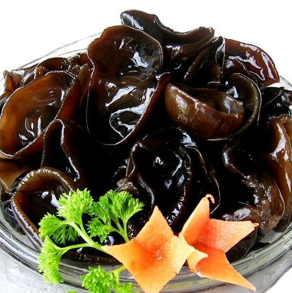 黑木耳有养血、止血、润燥、清肺作用,其铁含量比动物性食品中最高的猪肝高出五倍,比菠菜高三十倍。