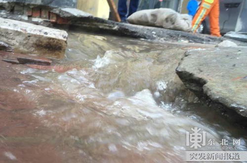 东北网11月29日讯(见习记者 迟亦达 记者 王忠岩)29日早,哈尔滨市香坊区亚麻街38号门前自来水管线爆裂,街道上积水面积长达百余延长米,给过往车辆带来安全隐患。