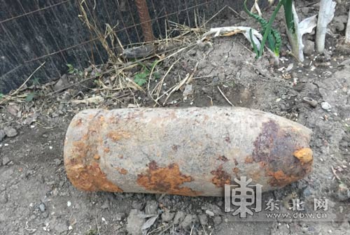 黑龙江一农户在菜园挖出巨型“炮弹” 直径约15cm长40cm