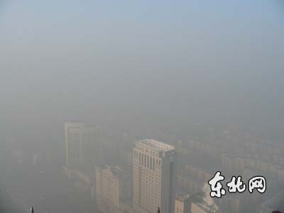 | 龙塔上拍摄的浓雾笼罩的哈尔滨 |