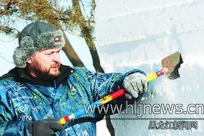 东北网1月11日电 第十二届哈尔滨国际雪雕比赛10日上午在太阳岛雪博会拉开帷幕,各国雪雕艺术家们在高3米、宽3米、厚4米的雪块上一决高下。比赛将持续四天,于1月13日落幕。