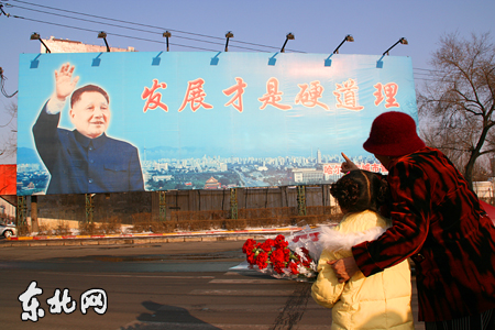 东北网2月19日电(记者 黄健) 2月19日是一代伟人、中国改革开放总设计师邓小平逝世10周年纪念日。哈尔滨市民带着孩子来到哈尔滨市省政府广场向邓小平同志的巨幅画像敬献鲜花,深切缅怀邓小平同志。