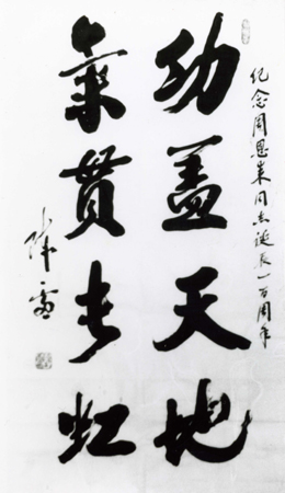 | 纪念周恩来同志逝世一周年,陈雷同志手书“功盖天地 气贯长虹” |