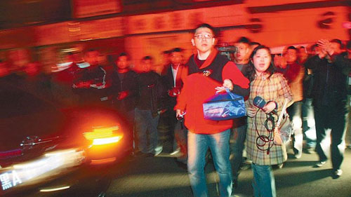 19时17分,交广台总监张晔亲自驾车,由交广台副总监刘宏源,编辑、记者范光来、吴曙光组成的送药小组,开着5辆车,赶往长春。车队后面,由4台出租车组成的爱心车队,护送着送药车辆,一起出发。