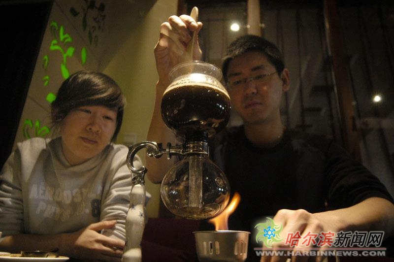 东北网4月9日讯 近日,冰城的青年中开始流行一种新时尚,他们在咖啡厅里用专用的器具,亲手研磨咖啡豆、掌握水温、煮咖啡,全程体验真正制作咖啡的过程,从中体会到咖啡文化中“苦尽甘来”的人生滋味。图为在一家咖啡厅内的顾客经过指导后自己体验制作咖啡的全过程。