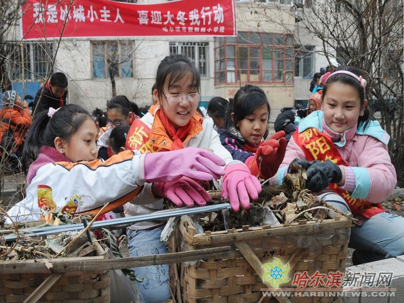 东北网11月14日讯 近日,在哈尔滨市道里区安和办事处正义社区的庭院里,来自新阳路小学的学生们对辖区庭院里的路灯杆、墙壁和草丛中的废弃物、包装袋、塑料袋等杂物进行彻底清理,帮助社区工作人员改变庭院环境。