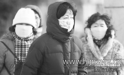 图为13日,哈市气温骤降,市民和游客用棉衣、棉帽、围巾、口罩抵御寒冷