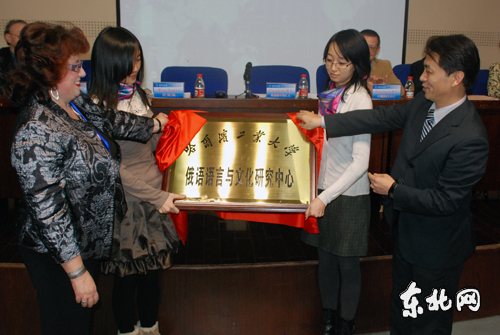 东北网11月1日讯(吉星 记者朱丹钰) 2009年是“中国俄语年”,俄罗斯教育部委托莫斯科大学于11月1日至8日在中国北京、哈尔滨、大连、成都和海口5个城市开展俄罗斯语言、文学、文化普及活动。俄方在哈尔滨一站选定哈工大。1日上午,双方在俄语及俄罗斯文化推广活动开幕式上为新成立的“俄语语言文化研究中心”揭牌。
