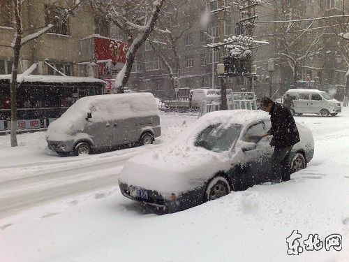 ![]() 哈尔滨中央大街公交站点上一位老人在风雪中等待着公交车。东北网网友摄 ![]() 4月13日,哈尔滨一居民小区内停放的汽车被厚厚的积雪覆盖。东北网记者 田稼摄