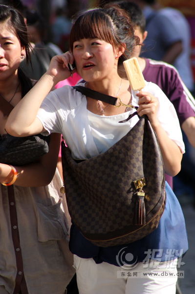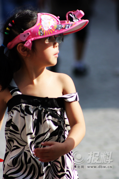 | 阳伞和墨镜,在阳光灿烂的夏日午后,是美女们的最爱。东北网记者 陈静 摄 |