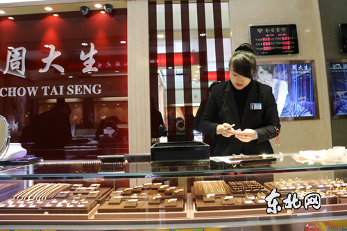 哈尔滨百盛购物中心周大生黄金饰品专柜。东北网记者 赵海 摄