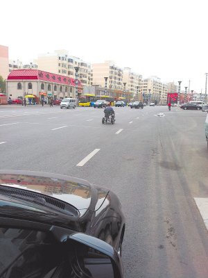 5日9时许,记者途经道里区安隆街,看到一位年约60岁的老人操控着电动轮椅穿梭于车流中。轮椅上安装了两大两小四个轱辘,两侧扶手一侧控制方向,一侧控制速度。老人接连超过几辆自行车,丝毫没有注意身旁经过的机动车。