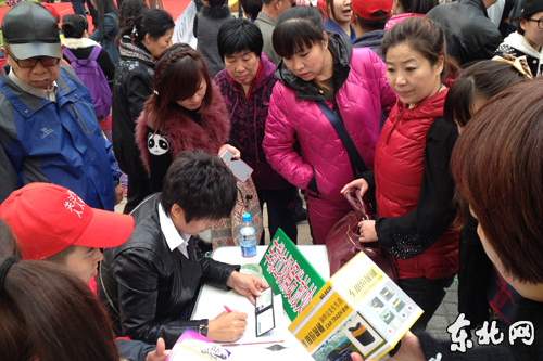 市民积极领取车载垃圾桶。东北网记者 王蕊 摄