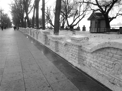 今年道里区园林管理局在哈市首次尝试以天然降雪为材料,在公园绿地外围打造高1.2米、宽0.5米、长约400余米的欧式景观雪墙,雪墙的出现让天然降雪在公园内零成本就地处理成为可能,也对冬天绿地植物天然颜色的不足形成了有效弥补。