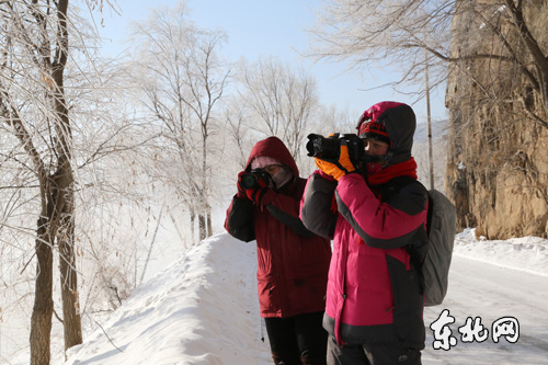 雾凇美景引来摄影爱好者。东北网记者 张锐 摄