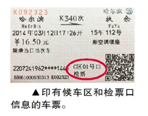 据介绍,在哈站站内售出的车票,以及在该站售票窗口、自动取票机上换取的互联网购票、电话购票票面上都将印有具体的候车室信息,旅客可凭此到指定的候车区和检票口检票进站,其他渠道购买或换取的车票暂无候车区信息。