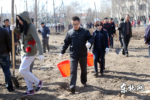 植树活动现场,大家情绪高涨。东北网记者 李博 摄