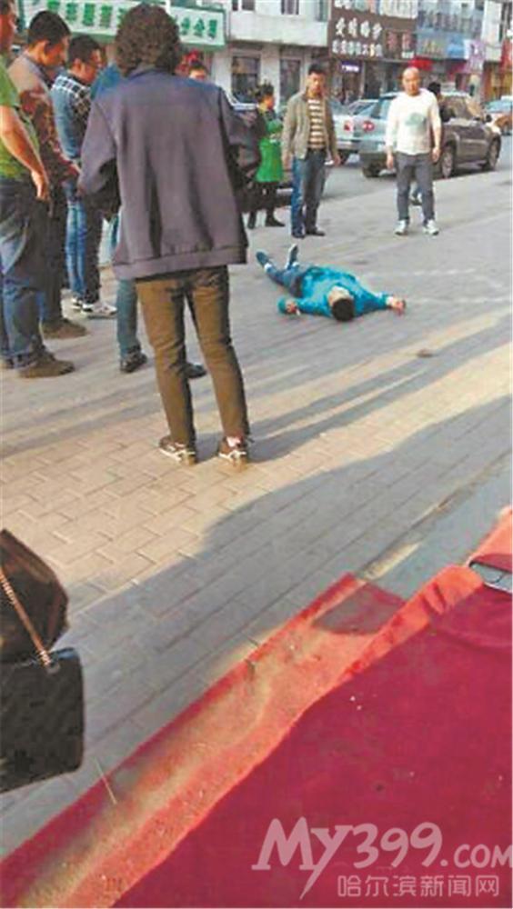 原来,李某前天没事翻看手机微信,从“呼兰微生活”中发现这件事情,后来打听到事件发生在西岗公园附近。微信中的几张图片显示,一名身着绿色上衣、牛仔裤的人躺在一处人行道上,周围有路人围观。