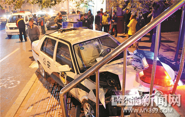 新晚报10月15日讯 昨19时许,道里区河润街102号门前,一台捷达警车失控驶上人行道,将路过此处的一名女子撞倒,随后女子被送往医院,车上男子被警方控制。事故原因正在调查中。