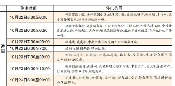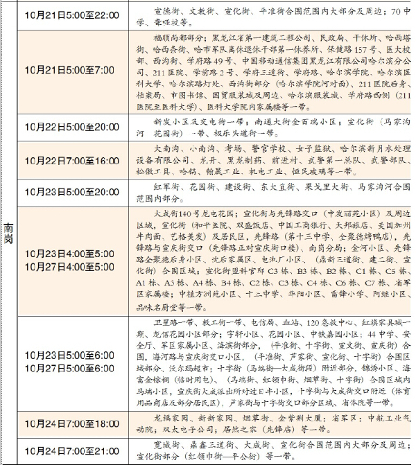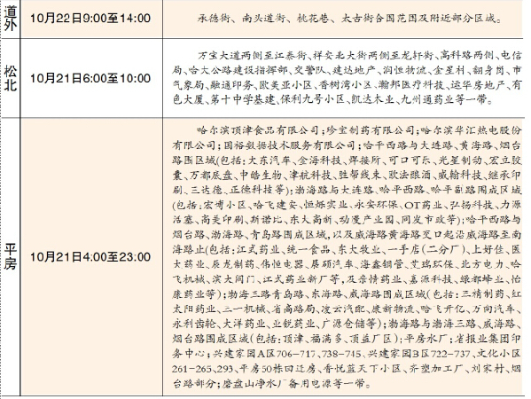 新晚报10月21日讯 记者昨天从国网哈尔滨供电公司获悉,10月21日至24日及27日,哈市城区多个区域及城郊部分区域将计划停电。