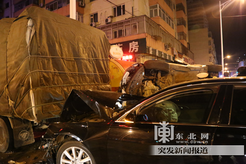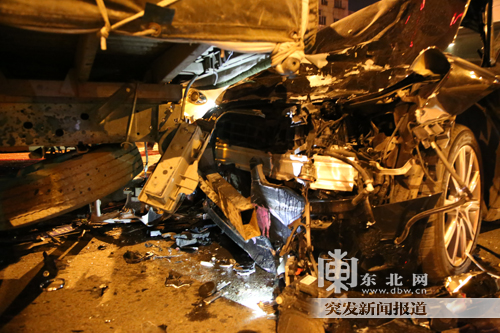 哈尔滨午夜福克斯奥迪上演“亲密相撞” 奥迪车损毁严重