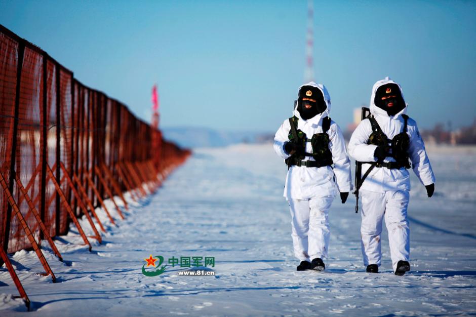 1月15日,黑龙江省军区边防某团“黑河好八连”官兵冒着零下28度严寒,在中俄界江黑龙江上巡逻执勤,守卫着祖国北大门。魏建顺 摄