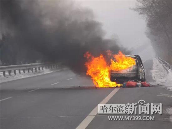 哈牡高速一本田车行驶中自燃 公路封闭1小时
