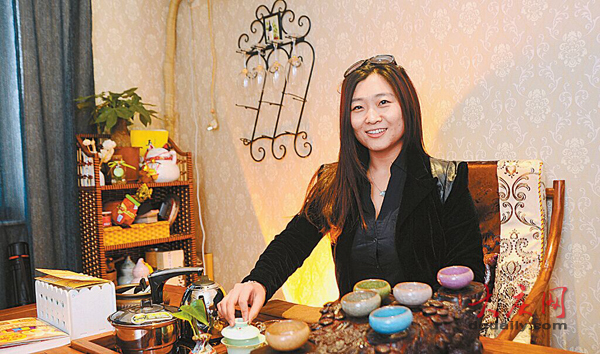 走进这位年轻老板的婚庆实体店,整个屋子充盈着淡淡的茶香。走进她的办公室,看见的是一个装饰古朴的“茶寮”。她本人,是个身材高挑,性情温柔的姑娘,外表并不像是一个事业型“女汉子”,更多的是书卷气。