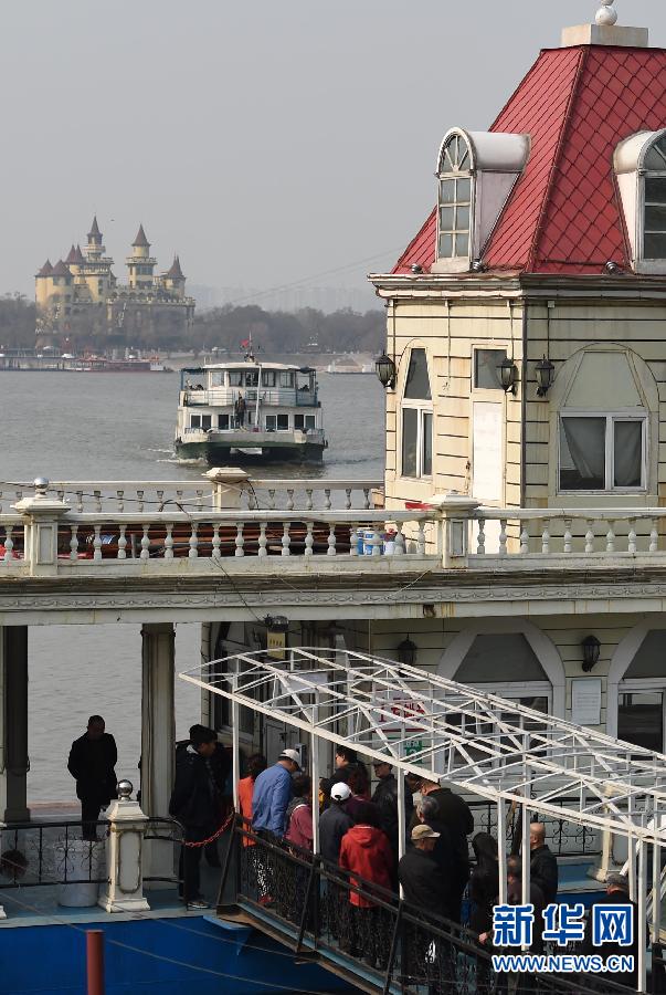 4月15日,市民和游客在哈尔滨九站码头等候轮渡。新华社记者 王建威 摄