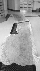 “最近气温低,小区供暖又不好,前两天大厅的2块水表已经被冻裂了,我们就担心别把供热管线冻裂了,全天派人巡视,到底还是冻裂了。”据蓝城物业工程部助理经理符永胜介绍,5点40分,他在巡视过程中,发现保洁室墙体一侧不停地向外喷水,喷出的水有1米高,雾气腾腾,地下车库顶棚也有水向下流。不一会儿,一楼大厅和地下车库的水就都没过了脚面。他立即将4部电梯全部升顶停运,将整栋楼的供暖阀门关闭。经过物业10多个工作人员3小时的清掏和排查,确定漏点为一楼的地热管线。因小区为分户供暖,每层有一个控制阀门,便恢复了一楼以上400多户居民的供热,而一层18户居民因漏点还没修复,无法开阀恢复供热。供热公司工作人员来到现场,没说如何解决。