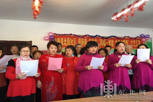 东北网1月28日讯 (尤越红 记者 雷蕾) 新春将至,哈尔滨市道里区新阳路街道办事处地德里北段社区组织了迎新春文艺汇演。党员和居民群众欢聚一堂,共同感受和谐社区大家庭的温暖。
