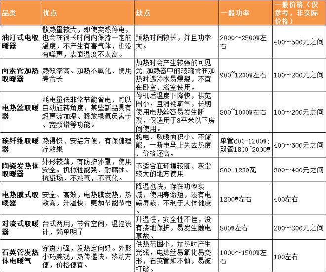 缺点:供热范围小,适用面积为10平方米左右的小房间,加热时产生光线,不宜在卧室使用。此外,由于电热丝易氧化等原因,石英管取暖器在市场上已不多见。因辐射取暖,传热距离较近,电热丝较易变形,石英管如不慎,易被打破。