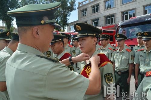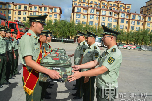 东北网8月29日讯(记者 周秘)29日,佳木斯市公安消防支队东风大队举行欢送退伍老兵离队返乡仪式。