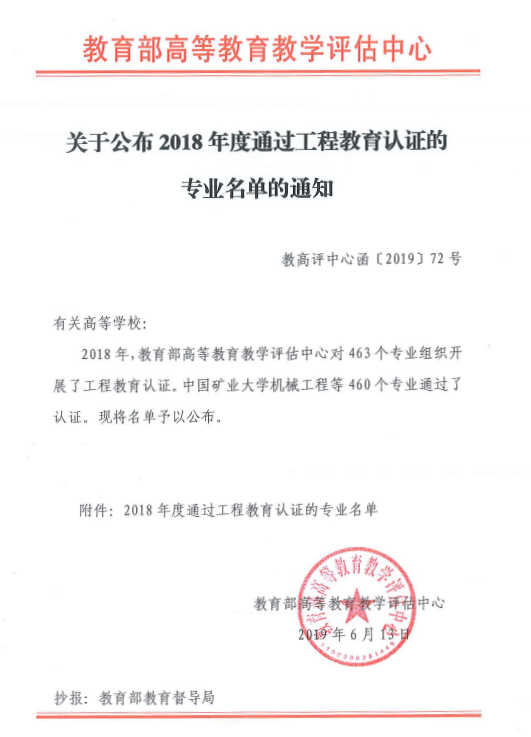 据悉,2018年全国共有460个专业通过认证,认证结论均为“通过认证,有效期6年(有条件)”。通过认证的专业将纳入《华盛顿协议》互认名单。实施工程教育专业认证是我国高等学校推进工程教育改革的重要举措,是工程教育国际化的重要标志,对学校进一步提升人才培养质量,提高学校竞争实力具有非常重要的推动作用。通过专业认证达到全校上下对以学生为中心育人理念的进一步树立,达到全校上下对OBE持续改进理念的准确把握,进而实现教育教学质量的快速提升。截止日前,该校共有七个专业通过了工程教育认证。