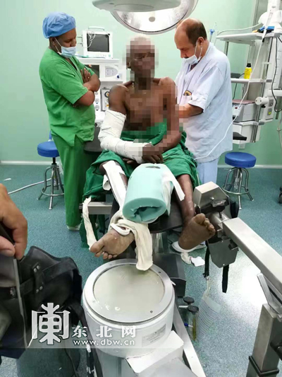 正在这时候,援非医疗小分队就接到了基法医院的电话。一位当地居民老太太因突遇车祸,伤势很严重,已经出现了休克。当地医院肯请中国医疗队对患者施行急救手术。