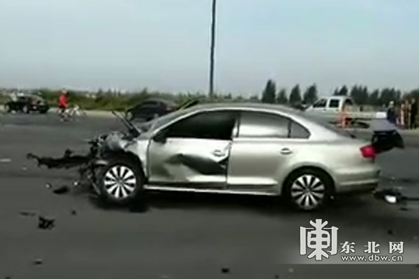 东北网9月5日讯(记者 葛金鑫)5日7时40分许,哈尔滨呼兰区滨水大道与北京路交口,一辆黑色奥迪A8与一辆银灰色速腾相撞,两辆车基本报废,车内有人受伤。