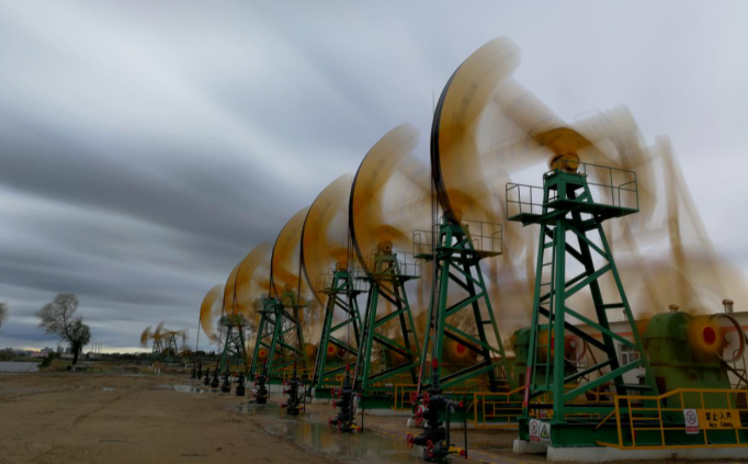 大庆2号丛式井平台忙碌的磕头机