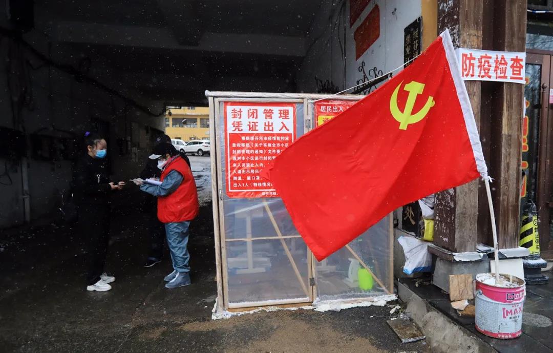 党旗飘扬 哈尔滨居民小区党员坚守卡点