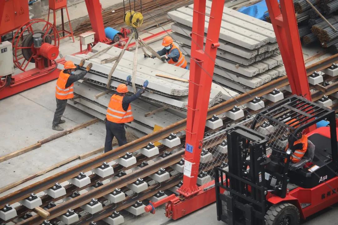 加班加点 哈尔滨地铁二号线复工铺轨南...