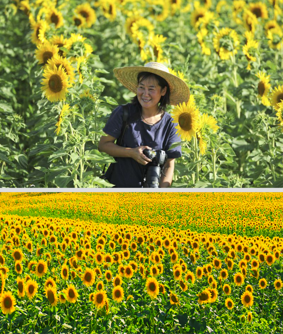 双鸭山市饶河县小南河村驻村书记冷菊贞带领村民积极发展观光农业,带动民宿旅游,闯出脱贫致富新路,图为:小南河村扶贫观光项目一一向日葵基地。