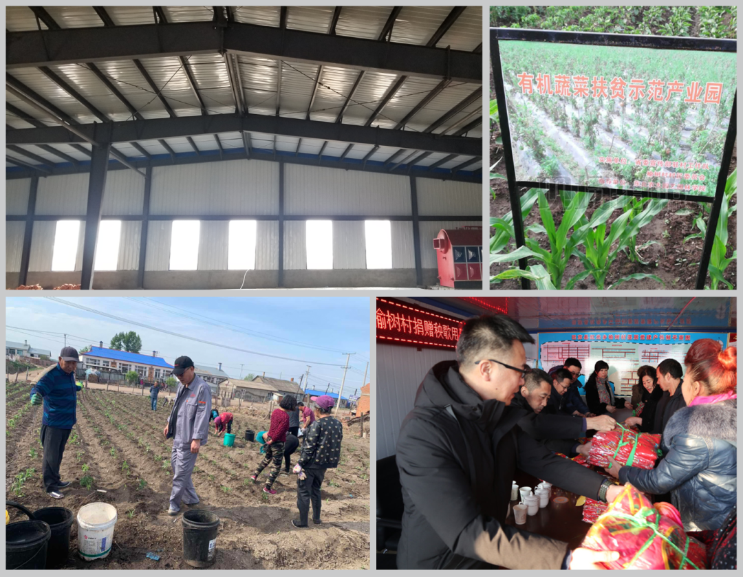 省委宣传部驻哈尔滨市巴彦县红光乡榆树村扶贫工作队扎根扶贫一线投入脱贫攻坚中(从左至右):(1)牵头指导推动重点扶贫产业项目——巴彦县红光乡鲜食玉米厂;(2)(3)带领村民开展有机蔬菜扶贫产业种植项目;(4)捐赠文化娱乐用品。