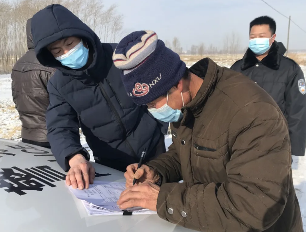 还有几天就是春节,法院干警获知三位被执行人返回肇源县消息的当天,就立即传唤被执行人赶赴执行土地现场,组织土地交付。通过现场对被执行人的耐心劝导和释法明理,被执行人平某某、何某同意履行义务。当日气温零下27度,执行干警在被大雪掩盖的耕地上进行详细测量和登记,往来协调申请执行人与被执行人,最终两个地块顺利测量登记完毕。